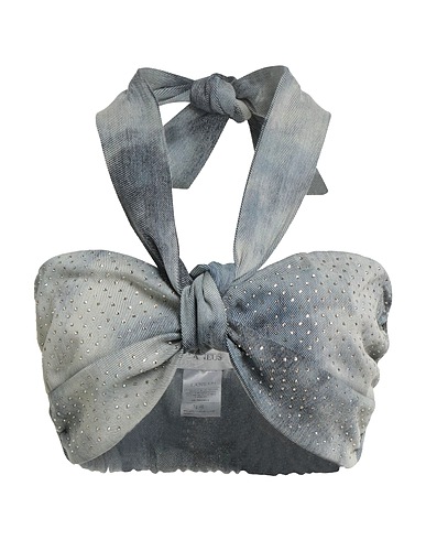 top court, coton denim, effet délavé, couleur unie avec applications, cristaux, sans bretelles, sans manches, intérieur entièrement doublé, fermeture à nouer, tissu élastique, lavage à la main ou nettoyage à sec, ne pas utiliser de javel, ne pas sécher en machine