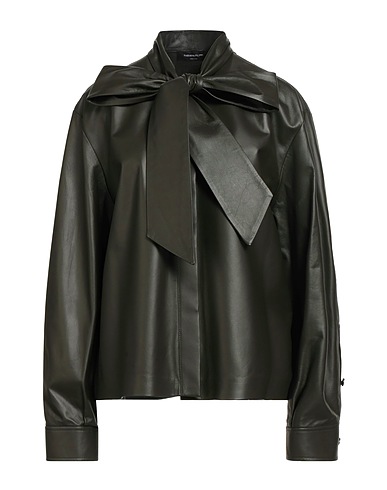 chemise avec nœud, cuir, uni, sans applications, manches longues, fermeture à boutons, contient des parties non textiles d’origine animale, nettoyage à sec, ne pas utiliser de javel, ne pas sécher en machine