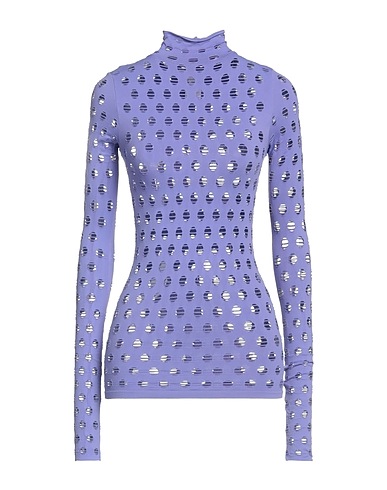 t-shirt, jersey synthétique, ajouré, uni, sans applications, col roulé, manches longues, tissu élastique