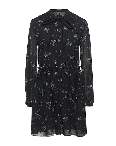 robe évasée, dentelle, crêpe, fantaisie fleurie, ruchés, col lavallière, manches longues, intérieur entièrement doublé, fermeture à boutons, sans poches