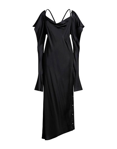 crêpe de chine, sans applications, uni, décolleté profond, manches longues, intérieur sans doublure, fermeture à boutons, sans poches, robe moulante