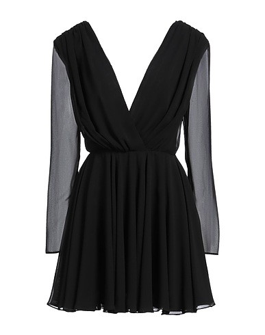 robe évasée, crêpe, uni, sans applications, décolleté profond, manches longues, intérieur entièrement doublé, fermeture à glissière, sans poches, nettoyage à sec, ne pas utiliser de javel, ne pas sécher en machine