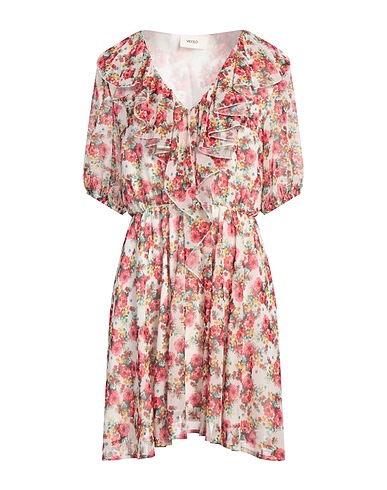 robe évasée, crêpe, fantaisie fleurie, ruchés, col en v, manches courtes, intérieur entièrement doublé, laver en machine ou à sec, ne pas utiliser de javel, ne pas sécher en machine