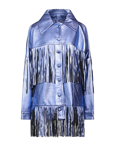cuir, métallique, à franges, uni, col classique, veste droite, manches longues, intérieur entièrement doublé, fermeture à boutons, multipoches, contient des parties non textiles d’origine animale, veste
