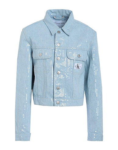 veste en jean style camionneur, coton denim, uni, paillettes, logo de la marque, lavage clair, col classique, veste droite, manches longues, poignets avec boutons, intérieur sans doublure, fermeture à boutons, multipoches, contient des parties non textiles d’origine animale