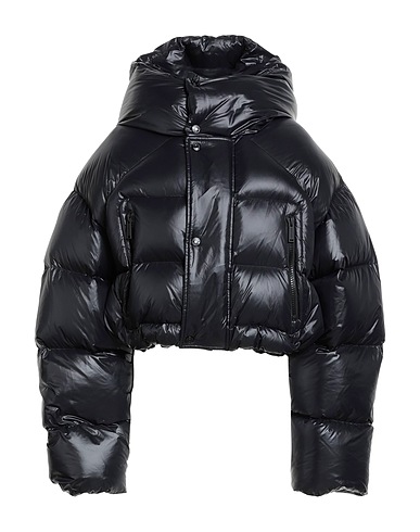 doudoune courte, tissu technique, logo de la marque, uni, col à capuche, manches longues, intérieur en plumes d'oie, rembourrage épais, fermeture à glissière, fermeture à boutons-pression, poches zippées, bas coulissé, contient des parties non textiles d’origine animale, laver en machine ou à sec, ne pas utiliser de javel, ne pas sécher en machine, ne pas repasser