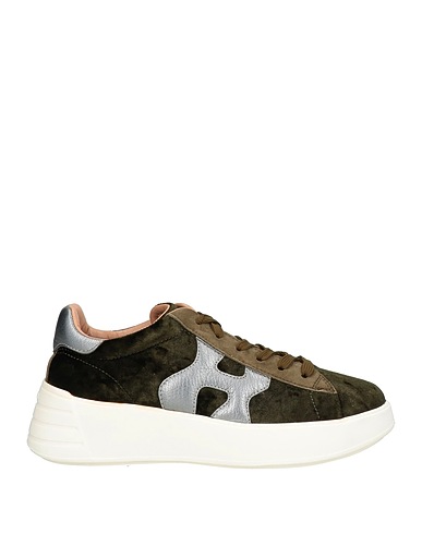 baskets & tennis basses, daim, imprimé bicolore, logo de la marque, bordures métallisées, fermeture à lacets, pointe arrondie, semelle compensée, semelle en caoutchouc avec gravures, intérieur en cuir, contient des parties non textiles d’origine animale