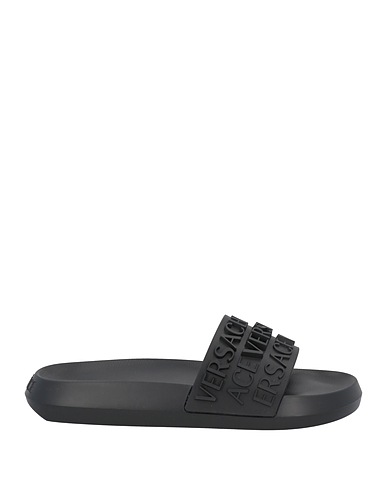 caoutchouc, logo de la marque, uni, doublure en caoutchouc, pointe arrondie, sans talons, semelle en caoutchouc avec gravures, sandales à une bande
