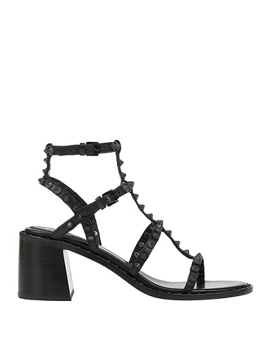 cuir, clous, couleur unie avec applications, doublure en cuir, fermeture avec bride à la cheville, pointe arrondie, talon géométrique, semelle en cuir, contient des parties non textiles d’origine animale, modèle