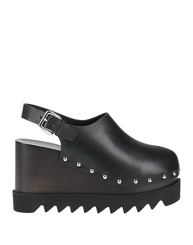 sabots, simili cuir, uni, sans applications, intérieur entièrement doublé, fermeture à boucle, pointe arrondie, talon compensé, semelle en caoutchouc, chaussant ample