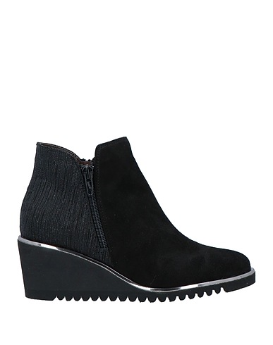 bottines, daim, uni, sans applications, intérieur en cuir, fermeture à glissière, pointe arrondie, talon compensé, semelle en caoutchouc, contient des parties non textiles d’origine animale