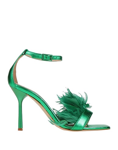 sandales à bride cheville, cuir, métallique, plumes, couleur unie avec applications, intérieur en cuir, bride cheville avec boucle, pointe carrée, talon aiguille, semelle en caoutchouc avec gravures, contient des parties non textiles d’origine animale