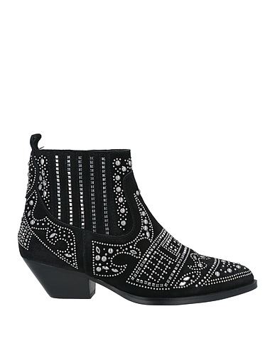 bottines, daim, couleur unie avec applications, clous, intérieur en cuir, empiècements élastiques, pointe étroite, talon cubain, semelle en cuir, contient des parties non textiles d’origine animale