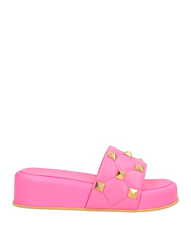 sandales à une bande, cuir, couleur unie avec applications, clous, pointe arrondie, semelle compensée, intérieur en cuir, semelle en caoutchouc, contient des parties non textiles d’origine animale