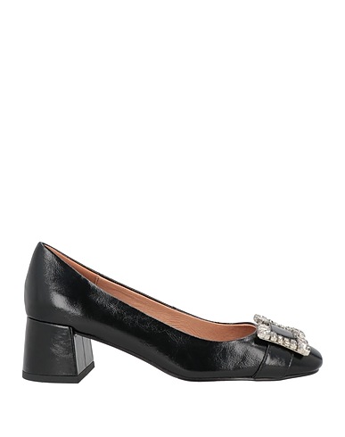 escarpins, cuir, couleur unie avec applications, cristaux, intérieur en cuir, pointe carrée, talon carré, semelle en caoutchouc, contient des parties non textiles d’origine animale