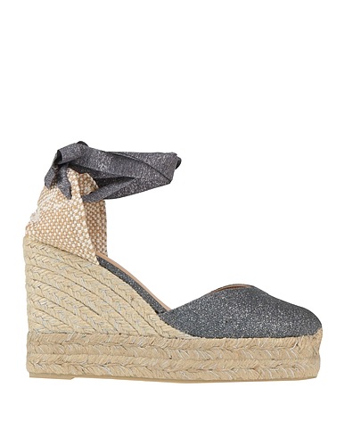 sandales espadrilles, toile, métallique, imprimé bicolore, sans applications, attache au niveau de la cheville, pointe arrondie, semelle compensée, semelle en caoutchouc, intérieur sans doublure