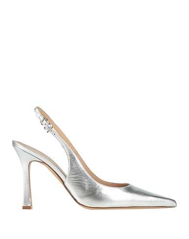 escarpins à bride arrière, cuir, métallique, uni, sans applications, intérieur en cuir, bride élastique, pointe étroite, talon aiguille, semelle en cuir, contient des parties non textiles d’origine animale, chaussant ample