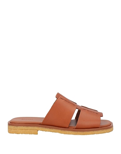 sandales à une bande, cuir, uni, sans applications, intérieur en cuir, pointe arrondie, sans talons, semelle en caoutchouc, contient des parties non textiles d’origine animale
