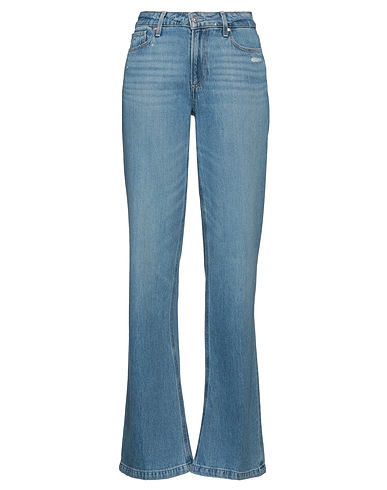 coton denim, effet délavé, tissu déchiré, sans applications, uni, lavage moyen, taille haute, taille avec passants, modèle évasé, regular fit, zip, 1 bouton, multipoches, modèle évasé