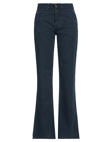 toile, logo de la marque, uni, taille haute, taille avec passants, modèle évasé, regular fit, 1 bouton, fermeture à glissière, cinq poches, 5 poches