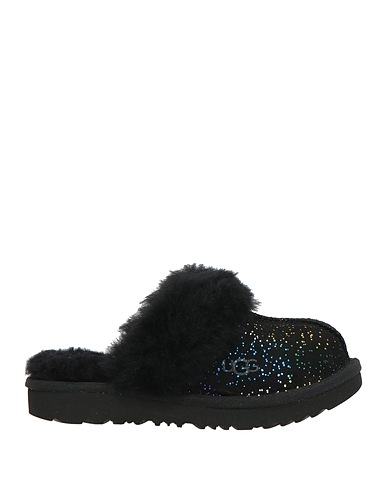 sandales, daim, tissu sherpa, couleur unie avec applications, logo de la marque, pailleté, intérieur en tissu sherpa, pointe arrondie, sans talons, semelle en caoutchouc avec gravures, contient des parties non textiles d’origine animale
