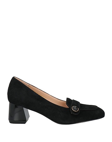 loafers, daim, couleur unie avec applications, décoré, bords en gros-grain, intérieur en cuir, pointe carrée, talon carré, semelle en caoutchouc, contient des parties non textiles d’origine animale