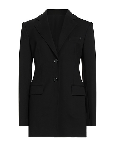 blazer droit, jersey, tissu stretch, uni, logo de la marque, col avec revers, manches longues, poignets avec fermeture éclair, intérieur entièrement doublé, fermeture à boutons, poches à rabat, poche passepoilée, nettoyage à sec, ne pas sécher en machine