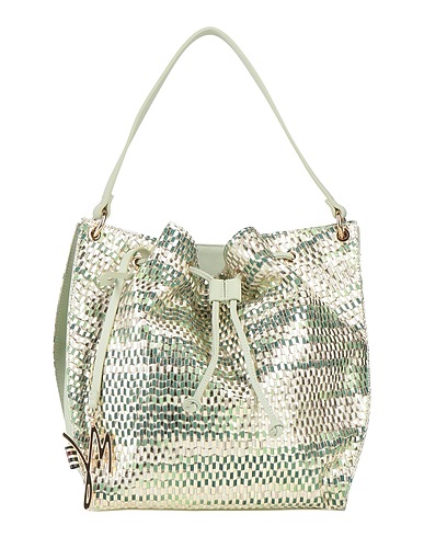 sac-seau, matière synthétique, métallique, imprimé multicolore, décoré, fermeture avec cordon de serrage, intérieur entièrement doublé, poches internes, bandoulière amovible, modèle grand
