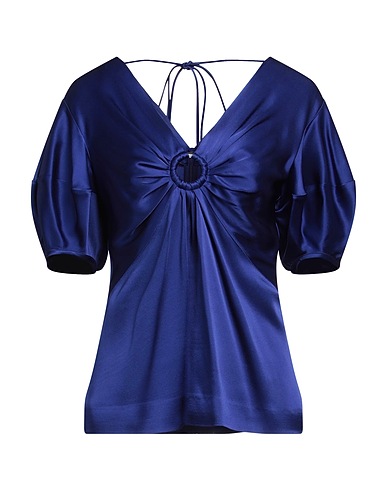 τοπ, σατέν, μονόχρωμο, χωρίς διακοσμητικές λεπτομέρειες, βαθιά λαιμόκοψη, κοντά μανίκια, κλείσιμο με φερμουάρ, κλείσιμο με δέσιμο