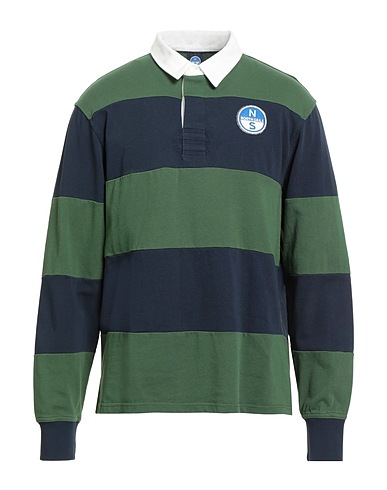 ζέρσεϊ, ρίγες, λογότυπο του brand, γιακάς με κουμπιά, μακριά μανίκια, πλύσιμο στο πλυντήριο, απαγορεύεται το χλώριο, μπορεί να χρησιμοποιηθεί στεγνωτήριο
