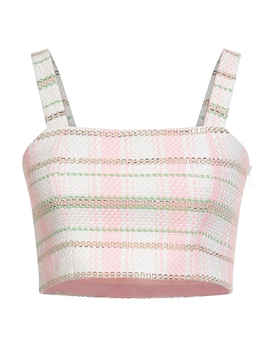 crop top, τουίντ, πολύχρωμη φαντασία, λογότυπο του brand, τετράγωνη λαιμόκοψη, αμάνικο, φόδρα, κλείσιμο με φερμουάρ, στεγνό καθάρισμα, απαγορεύεται το χλώριο, απαγορεύεται το στέγνωμα σε στεγνωτήριο