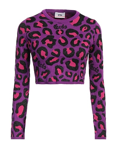 πλεκτό, λαμέ, μπλούζα από ελαφρύ νήμα, λογότυπο του brand, με κέντημα, λεοπαρδαλέ σχέδιο, στρογγυλή λαιμόκοψη, μακριά μανίκια, με τσέπες