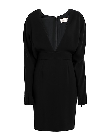 εφαρμοστό φόρεμα, κρεπ, χωρίς διακοσμητικές λεπτομέρειες, μονόχρωμο, βαθιά λαιμόκοψη, μακριά μανίκια, με βάτες στους ώμους, φόδρα, κλείσιμο με φερμουάρ, χωρίς τσέπες