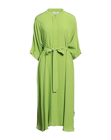 κρεπ, με ζώνη, μονόχρωμο, γιακάς μάο, μανίκια μήκους 3/4, χωρίς φόδρα, κλείσιμο με κρυφά κουμπιά, χωρίς τσέπες, πλύσιμο στο πλυντήριο ή στεγνό καθάρισμα, απαγορεύεται το χλώριο, απαγορεύεται το στέγνωμα σε στεγνωτήριο, φόρεμα καμπάνα