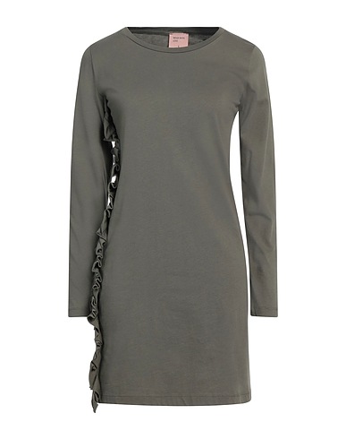 φόρεμα καμπάνα, ζέρσεϊ, γκρο-γκρεν, μονόχρωμο με απλικέ στοιχεία, με ύφασμα σε στρώσεις, διακοσμητικές πλαϊνές ρίγες στις ραφές, στρογγυλή λαιμόκοψη, μακριά μανίκια, χωρίς τσέπες, πλύσιμο στο πλυντήριο ή στεγνό καθάρισμα, απαγορεύεται το χλώριο, απαγορεύεται το στέγνωμα σε στεγνωτήριο