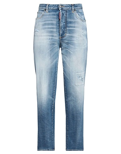 βαμβακερό denim, εφέ ξεβαμμένου, φθαρμένη εμφάνιση, λογότυπο του brand, μονόχρωμο, ανοιχτόχρωμο, ψηλόμεσο, κλείσιμο με κουμπιά, πέντε τσέπες, μοντέλο με ίσιο μπατζάκι