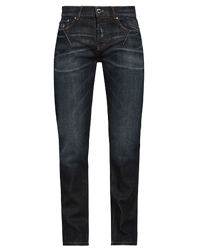 βαμβακερό denim, εφέ ξεβαμμένου, λογότυπο του brand, μονόχρωμο, σκούρο, ψηλόμεσο, θηλύκια ζώνης, σε ίσια γραμμή, κανονική εφαρμογή, κλείσιμο με κουμπιά, πέντε τσέπες, στρετς, περιέχει μέρη από μη υφαντικές ύλες, ζωικής προέλευσης, μοντέλο με ίσιο μπατζάκι