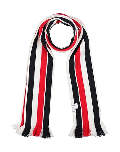 κασκόλ, μαλλί, πλεκτό μετρίου βάρους, ρίγες, λογότυπο του brand, με κρόσσια