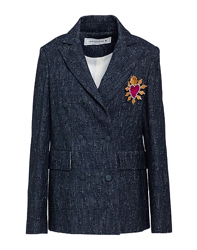 μονόπετο σακάκι, τουίλ, με εμφάνιση τζιν, μονόχρωμο με απλικέ στοιχεία, καρφίτσα, πέτο, μακριά μανίκια, φόδρα, κλείσιμο με κουμπιά, τσέπες με καπάκι, στεγνό καθάρισμα, απαγορεύεται το χλώριο, απαγορεύεται το στέγνωμα σε στεγνωτήριο