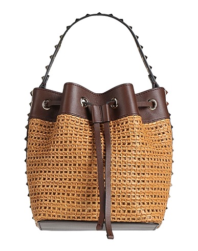τσάντα πουγγί, δέρμα, δίχρωμη φαντασία, τρουκς, λογότυπο του brand, κλείσιμο με κορδόνι, χερούλι τσάντας, αποσπώμενο λουρί ώμου, μοντέλο medium, περιέχει μέρη από μη υφαντικές ύλες, ζωικής προέλευσης