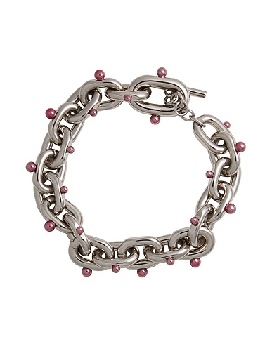 κολιέ, μέταλλο, λογότυπο του brand, σε ασημί απόχρωση, κούμπωμα με πείρο