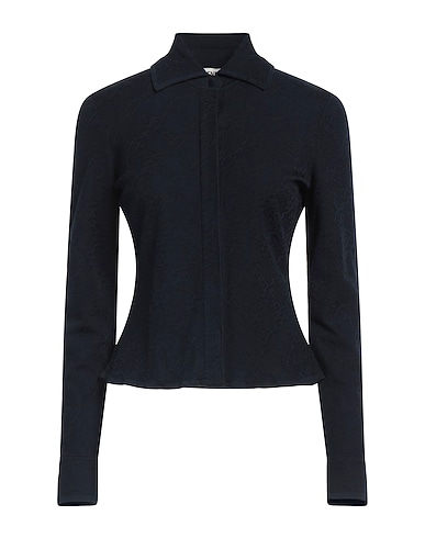 shirt, knitted, heavy-weight knit, solid color, no appliqués, classic collar, long sleeves, button fastenings