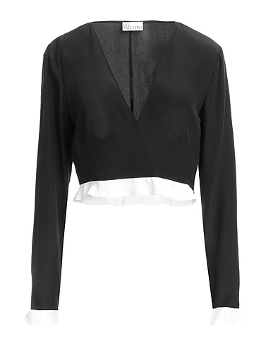 crop top, crepe, two-tone, no appliqués, v-neck, long sleeves, zipper fastening
