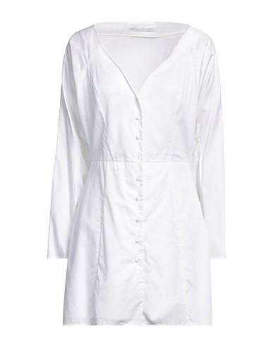 flared dress, poplin, no appliqués, solid color, v-neck, long sleeves, button closing