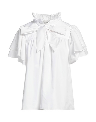 bow blouse, woven, lace, no appliqués, solid color, bow-tie neckline, short sleeves, 1 button, no pockets