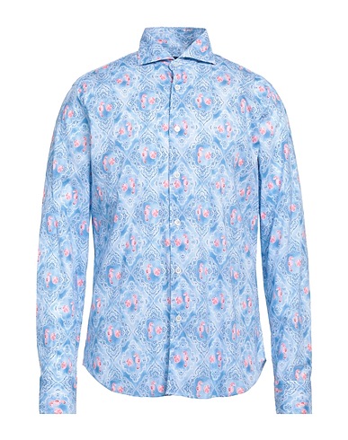 woven, no appliqués, multicolor, classic collar, long sleeves, buttoned cuffs, button fastenings, no pockets, stretch, contains non-textile parts of animal origin, small sized, regular-fit shirt