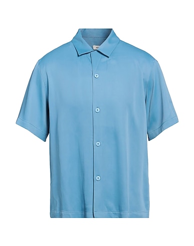 satin, no appliqués, solid color, lapel collar, short sleeves, button fastenings, no pockets, regular-fit shirt