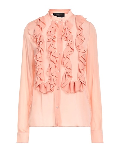 woven, ruffles, solid color, mandarin collar, long sleeves, button fastenings, without pockets, dry clean, do not bleach, do not tumble dry, ruched shirt, this brand runs large