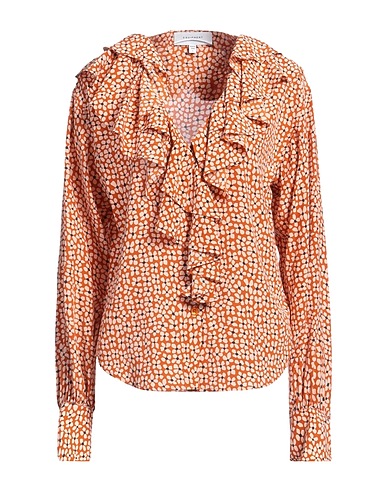 ruched shirt, crepe, ruffles, floral-print, v-neck, long sleeves, without pockets, hand wash or dry clean, do not bleach, do not tumble dry