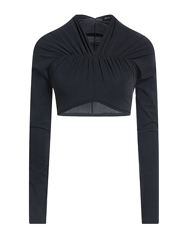 top, synthetic jersey, solid color, gathered, v-neck, long sleeves, stretch, dry clean, do not bleach, do not tumble dry